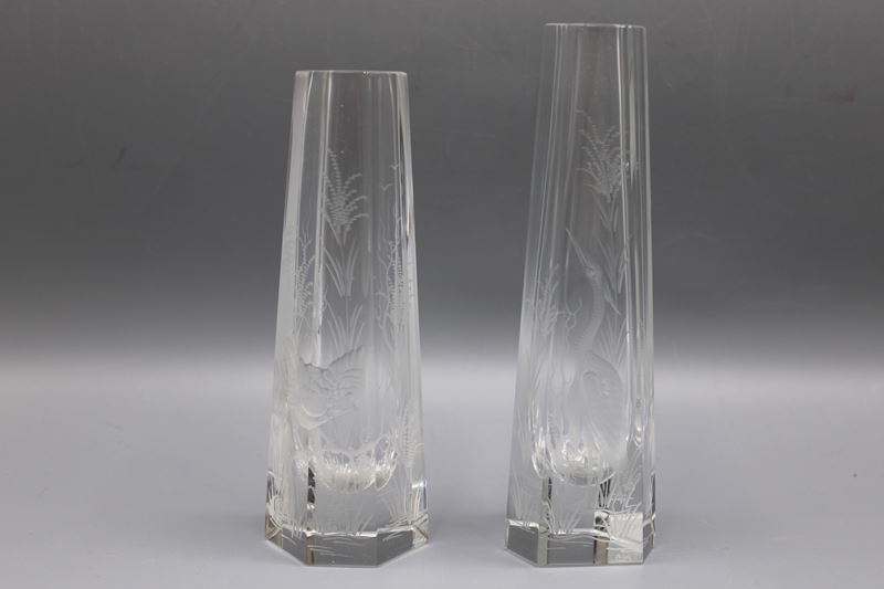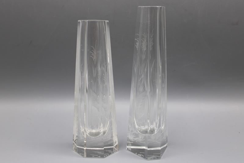 Aida Kristallglas Vasen tief graviert Tschechoslowakei 20 Jh.