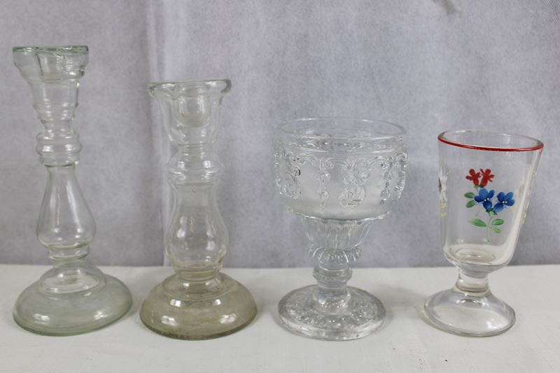 0732-Alte Kerzenständer Gläser Konvolut 6 St.