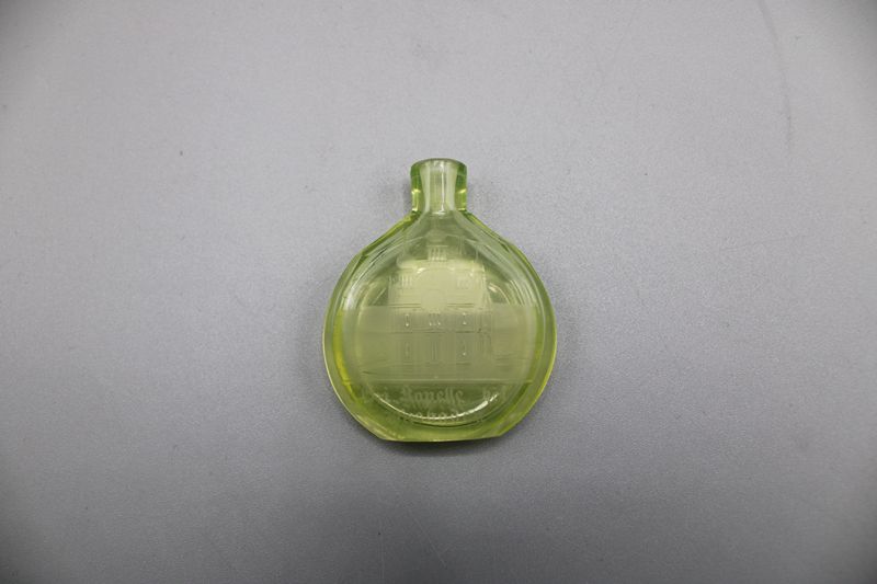 0733-Kleines Schnupfglas Uranglas “Eri Kapelle bei Wiesbaden” ca. 5,3 cm um 1900