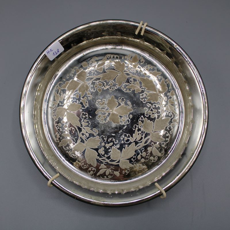 Bauernsilber Tablett mit Weinlaubdekor Böhmen 19 Jh.