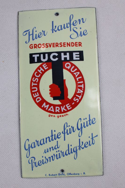 0740-Emailschild Werbeschild Grossversender Tuche um 1930
