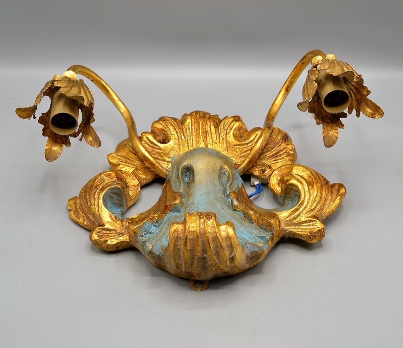 0748-Wandlampe 2-flammig barocker Stil geschnitzt gefasst Italien 20 Jhdt.
