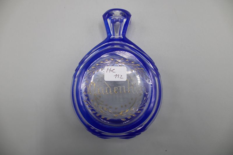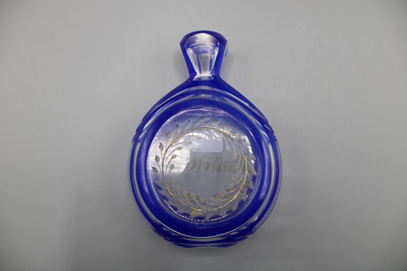 Schnupfglas blauer Überfang Schliff ca. 11 cm um 1900