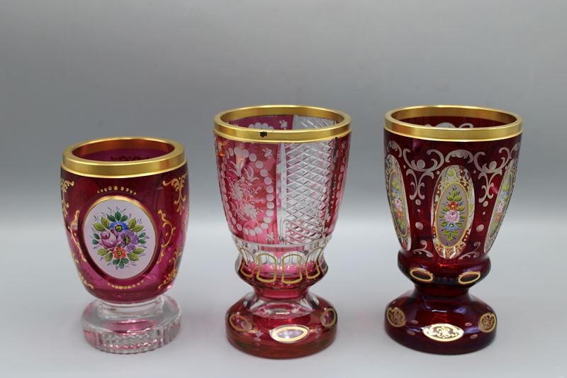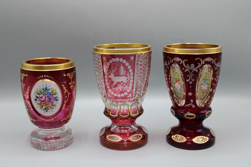 Fussbecher rubinrot 3 St. wohl Böhmen 20 Jh.