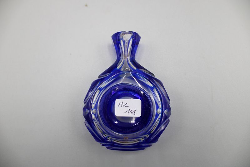 Schnupfglas blauer Überfang Schliff ca. 8,5 cm um 1900