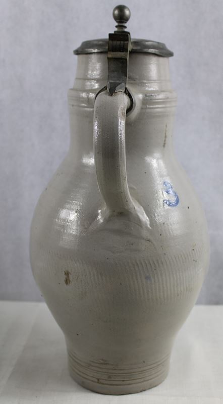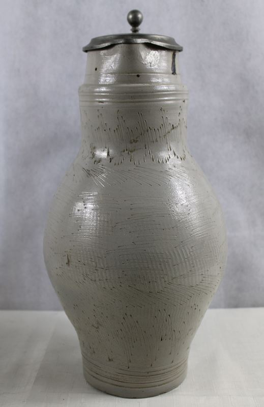 0752-Mostkrug 3 L mit Ritzdekor und Zinndeckel um 1900