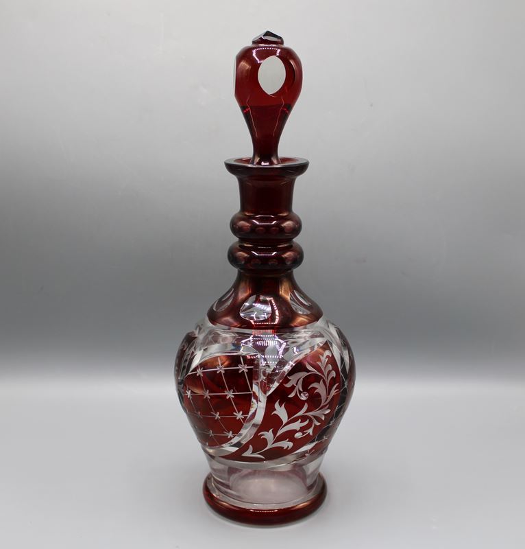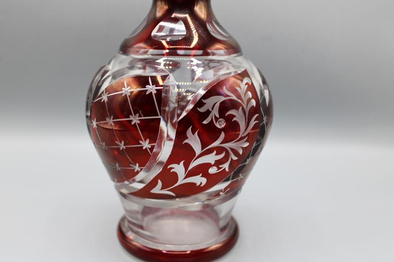 Glaskaraffe geschliffen rubiniert ca. 33 cm