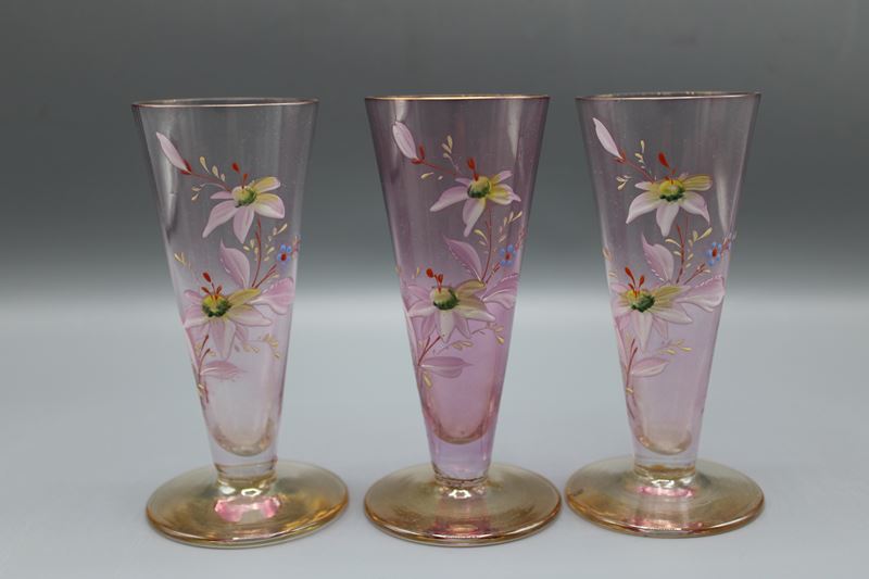 florale Emailmalerei, Karaffe ca. 37 cm, Gläser ca. 12,5 cm