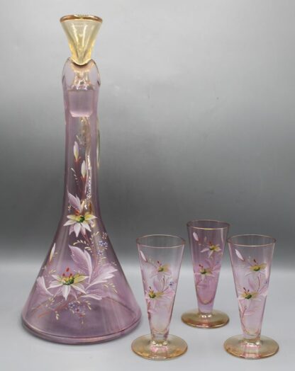 Glaskaraffe mit 3 Gläsern um 1900