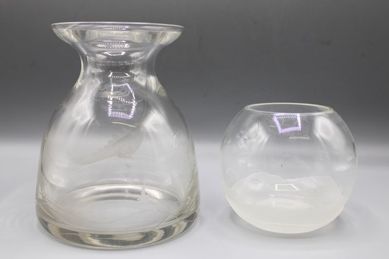 0757-Glaskunst gravierte Vasen 2 St.