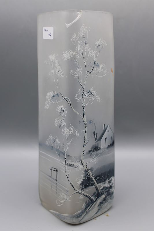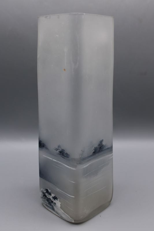 0758-Glasvase vierkantig mit Landschaft bemalt
