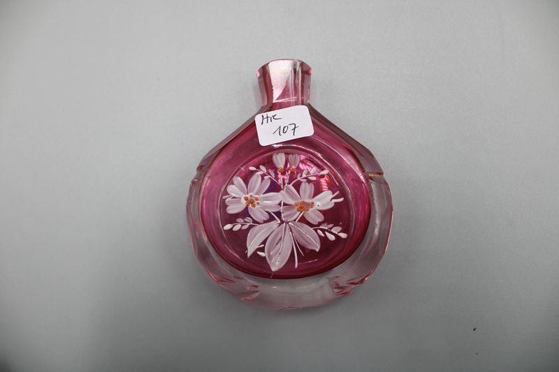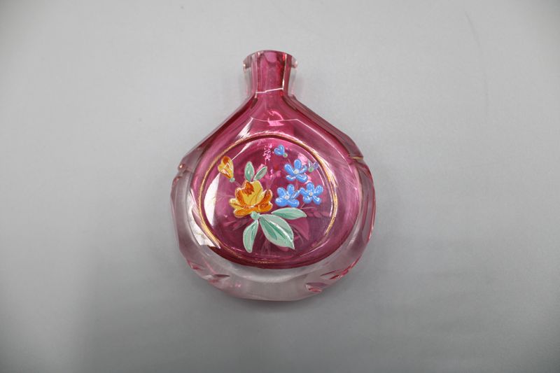 0759-Schnupfglas rubin unterfangen Emaildekor ca. 8,5 cm um 1900