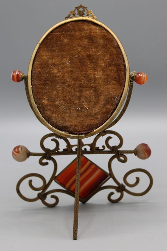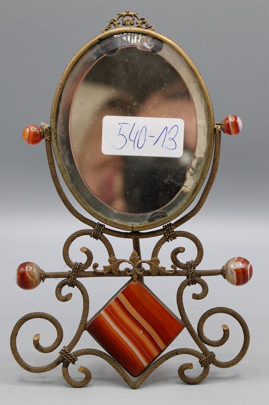 0766-Kleiner Tischspiegel mit Achat um 1900