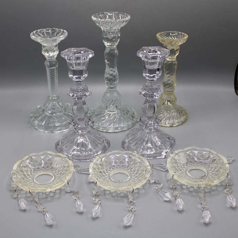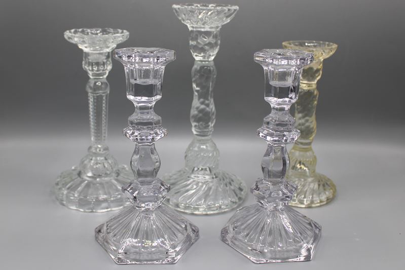 0770-Pressglas Kerzenständer Konvolut 5 St.