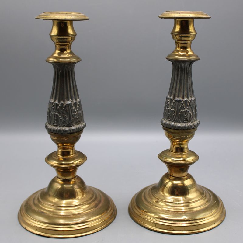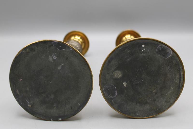 0781-Paar Messing Kerzenleuchter mit Zinneinlage 19 Jh.