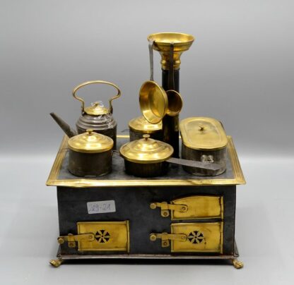 0784-Puppenküche Puppenherd mit Zubehör um 1900