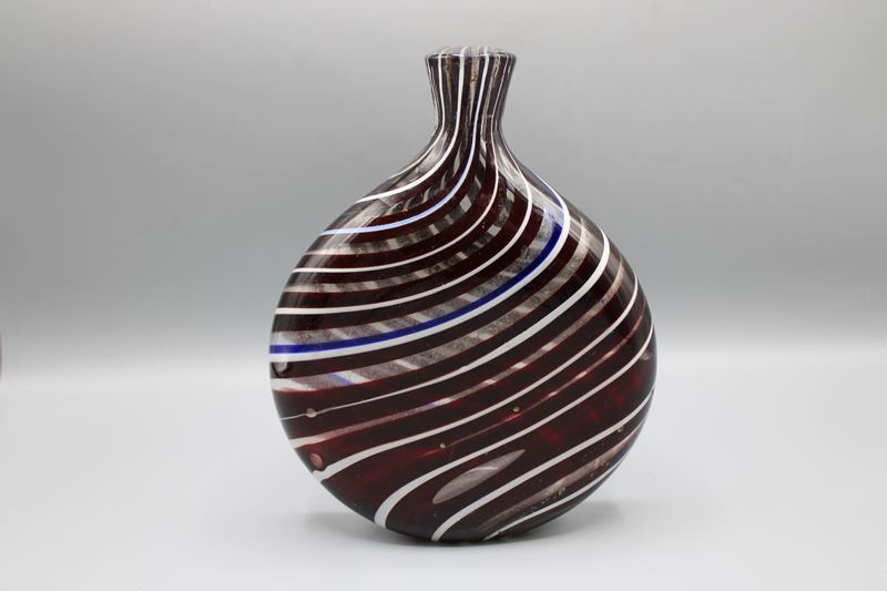 0784-Schnupftabakglas mit Farbbändern ca. 20 cm 19/20 Jh.