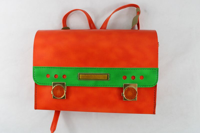 0793-Schultasche Schulranzen orange grün 70er Jahre