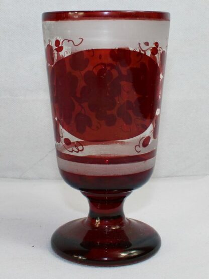0794-Fussbecher partiell rubiniert mit Weinlaubdekor Böhmen / Bay. Wald 19 Jh. ca. 14 cm