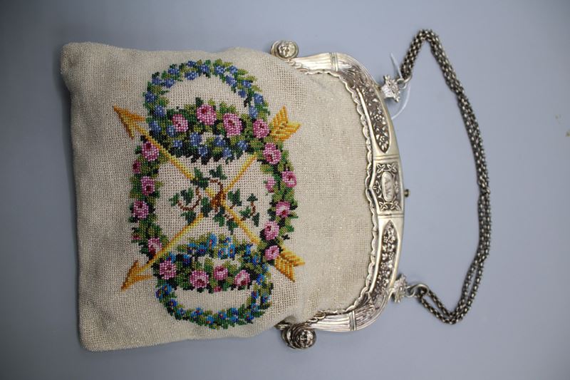 Perltasche florale Perlstickerei u. Füllhörner um 1900