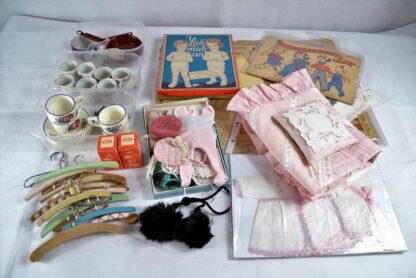 0802-Puppenstube Puppengeschirr Puppenkleidung alt etc. Konvolut