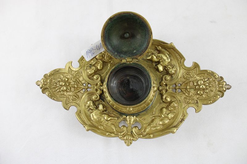 0803-Tintenfass mit Putti Messing 19 Jh.