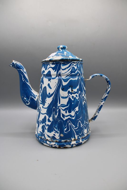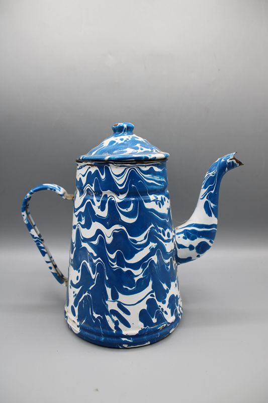 Emailkanne blau weiß marmoriert 1. H. 20 Jh.