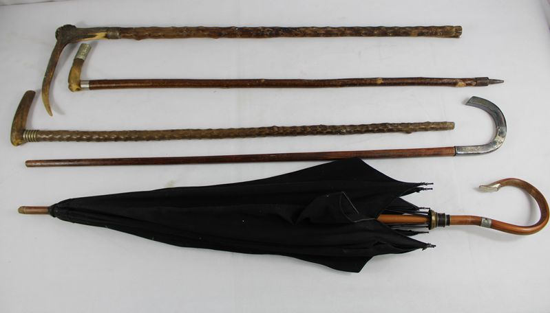 0813-Gehstöcke Schirm 5 St. Konvolut 1. H. 20 Jh.