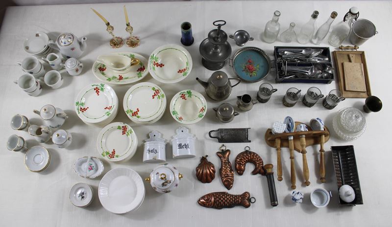 darunter Küchenhelfer, Backformen, Besteck, Kaffeeservice, Essgeschirr, Flaschen und vieles mehr, vereinzelt Einzelteile, tlw. Beschädigungen vorhanden