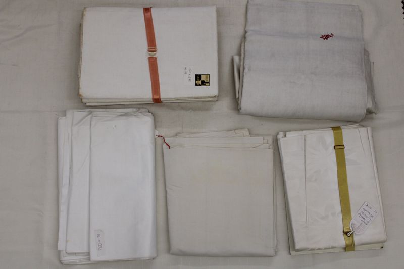 0822-Bettlaken Stoffe Leinen Damast Konvolut ca. 9,5 kg