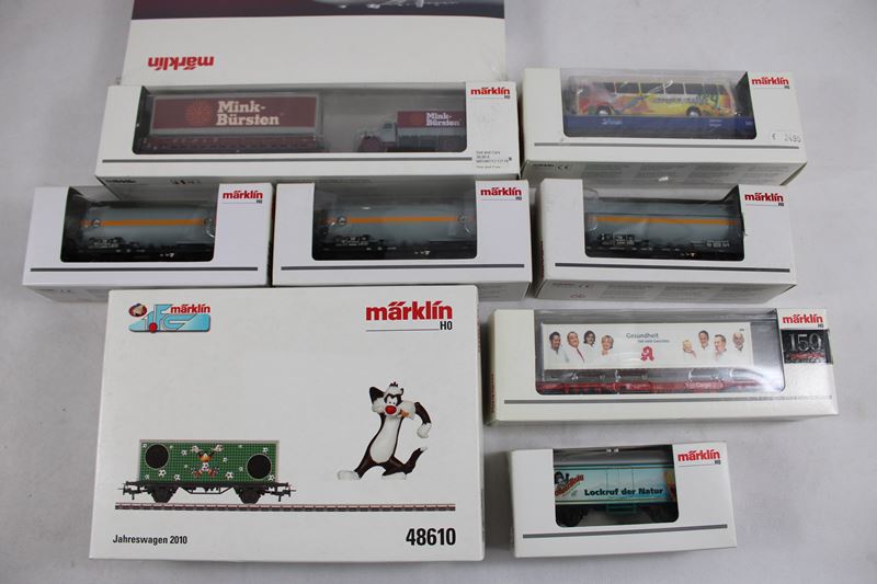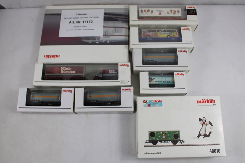 darunter Jahrbuch Märklin DI Insider 2007/2008, Jahreswagen 2010 48610, 46453, Bierwagen Auer Bräu 2, 2 x Jahreswagen 2007 48157, Jahreswagen 2007 48707, DB Cargo Wagon "Gesundheit hat viele Gesichter", Museumswagen 2012 48112