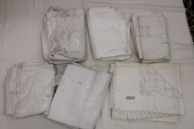 0831-Einschlagtücher Bettwäsche ca. 20 St. 19/20 Jh.