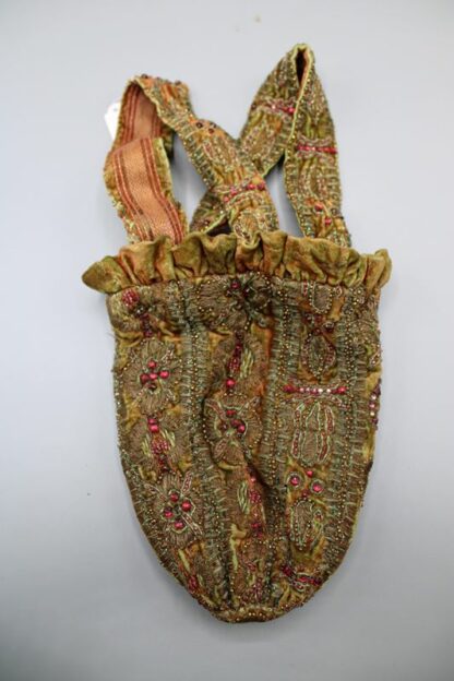 2 Henkel, rote Glassteine, feine Gold- Silberfäden