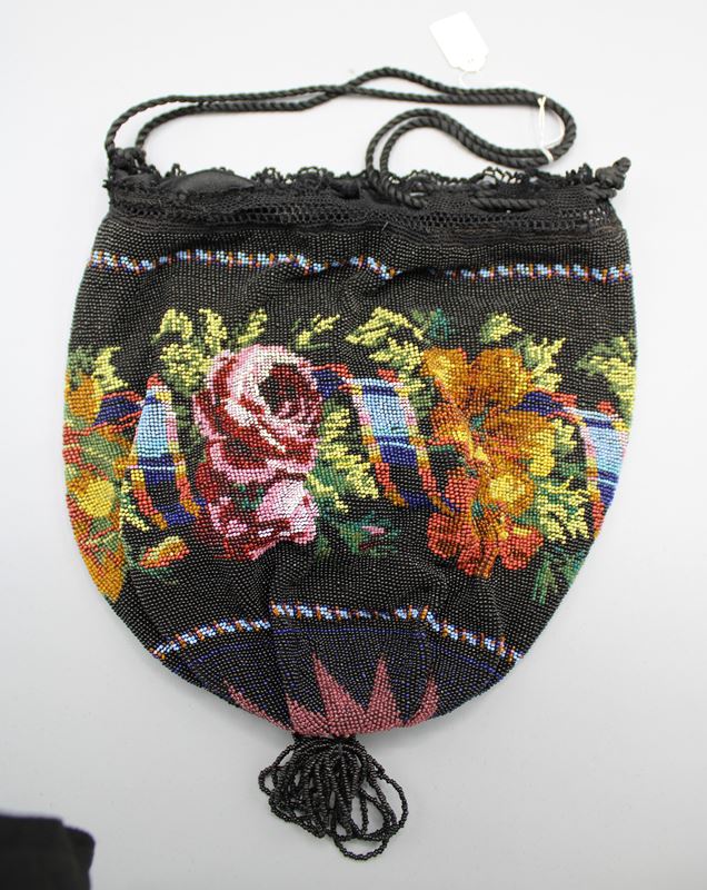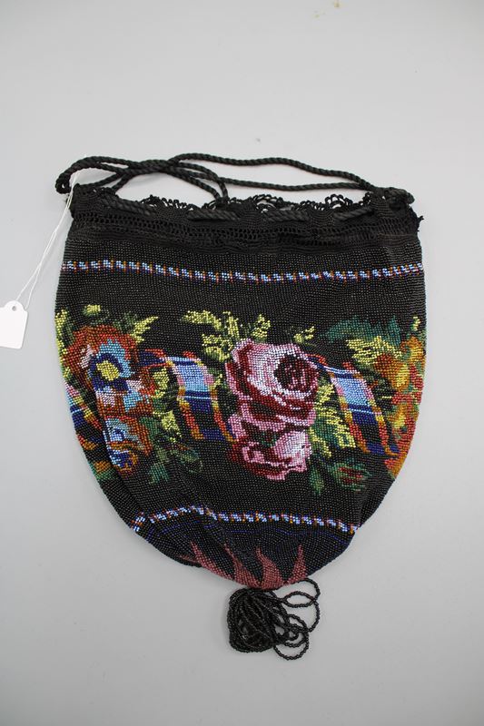 0847-Großer Perlbeutel mit Rosendekor um 1900
