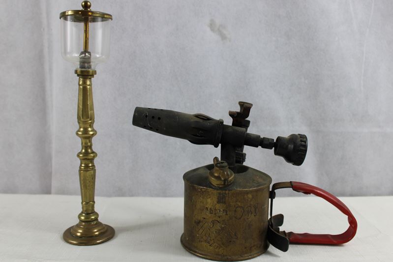 0849-Adler Lötlampe u. Messingstreuer Konvolut