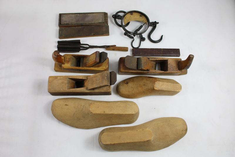0852-Alte Hobel Schuhleisten Rasiermesser etc. Konvolut