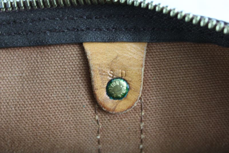 mit Date Code 843 SD, helle Lederriemen tlw. mit Flecken, Gebrauchsspuren, Reisverschluss rechts beschädigt