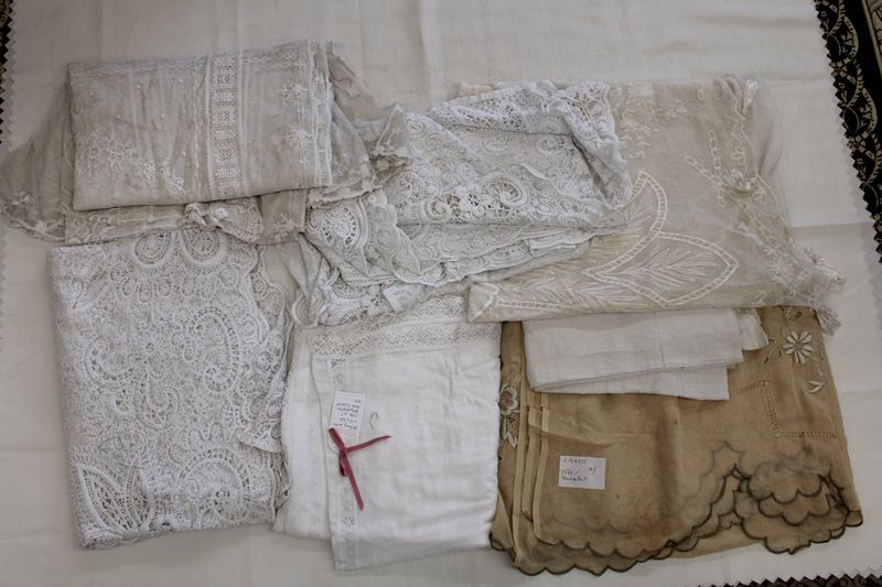 Zarte Vorhänge weiß/cremefarbig ca. 13 St. 19/20 Jh.
