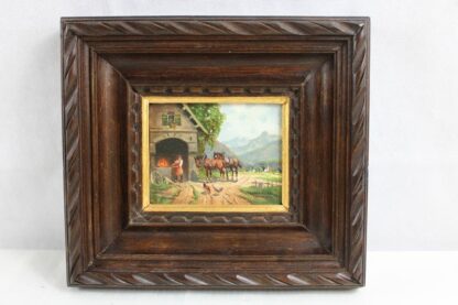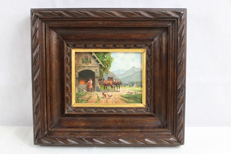 0877-Karl Rohrhirsch (1875-1954) Gemälde Schmiede mit Pferden
