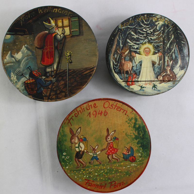0903-Spanschachteln Weihnachten Ostern 3 St. 40er Jahre
