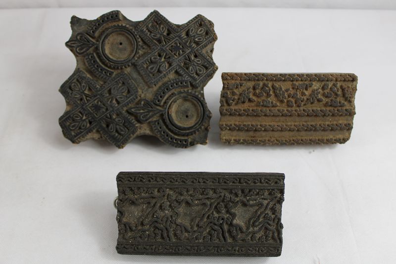 0908-Textildruck Holzstempel Konvolut 3 St.