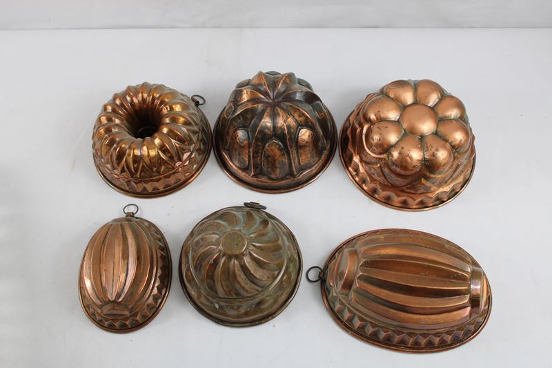 0911-Kupfer Backformen mittlerer Größe 6 St. 19/20 Jh.