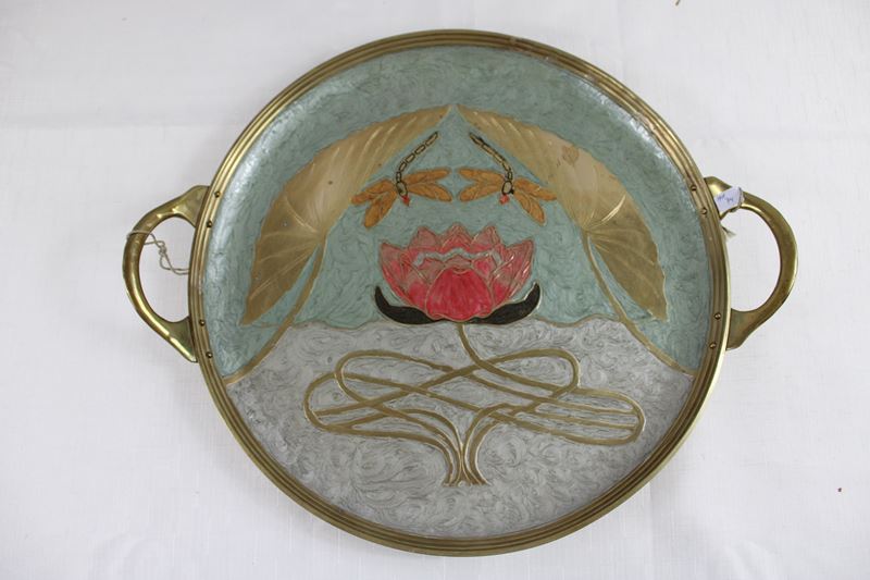 0913-Große Messingplatte im Stile des Jugendstils 20 Jh.