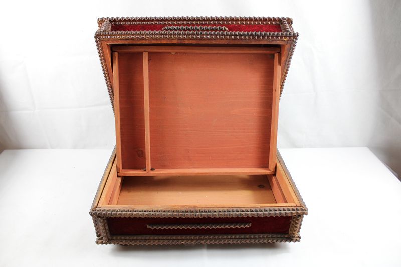 Tramp Art Schmuckschatulle um 1900