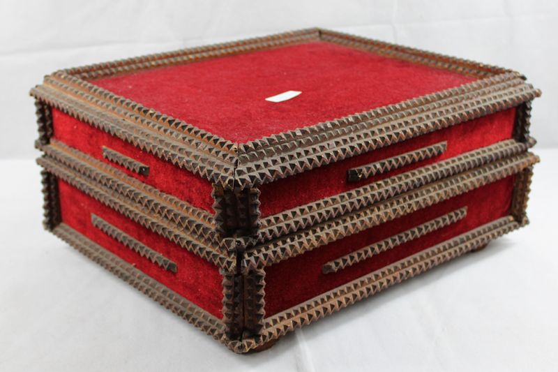 0916-Tramp Art Schmuckschatulle um 1900