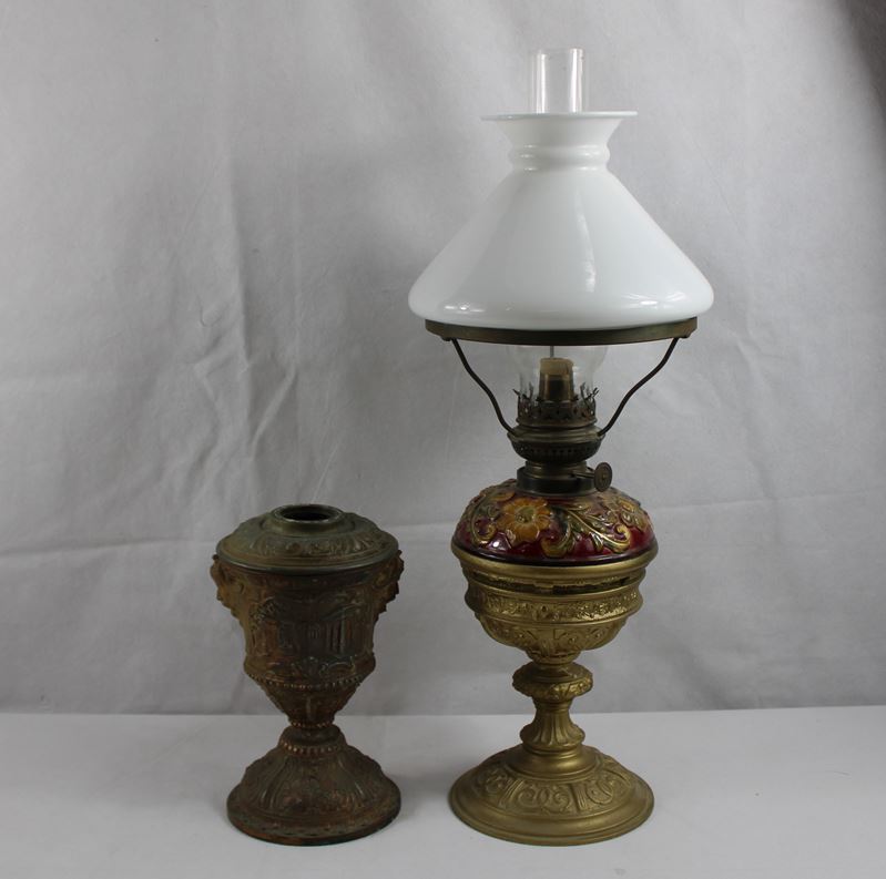 0918-Majolika Petroleum Lampe um 1900 ca. 55 cm