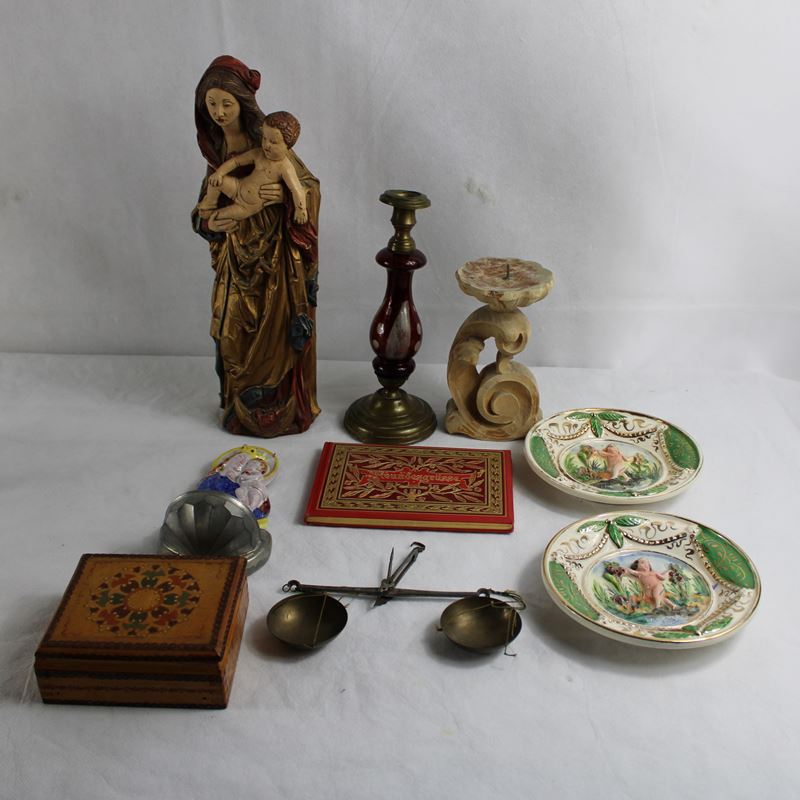 darunter ein unbeschriebenes Poesiealbum 1. H. 20 Jh., ein geschnitzter Kerzenständer, religiöse Objekte etc., vereinzelt Beschädigungen möglich
