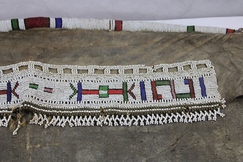 Perlenbesetzte Leder Schürze, bekannt als Isithimba, die von verheirateten Ndebele Frauen getragen wird, ca. 98 x 71 cm, Altersspuren