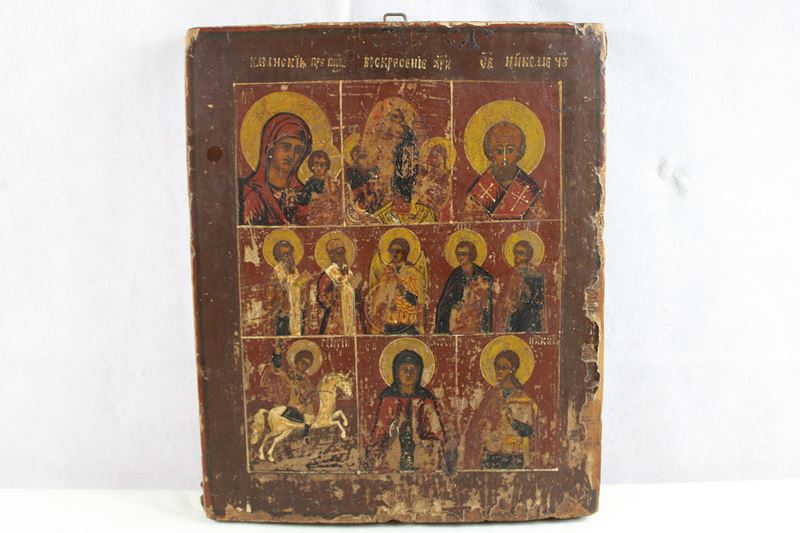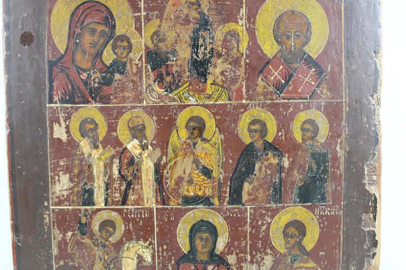 0976-Ikone mit diversen Heiligen 19 Jh.