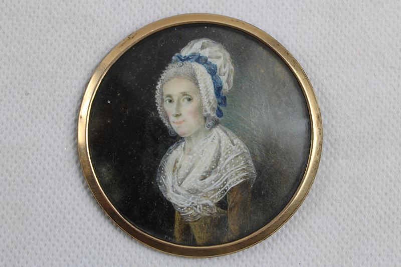 feine Malerei, obere Rahmenauflage ca. 500er Gold, Ø 5,7 cm